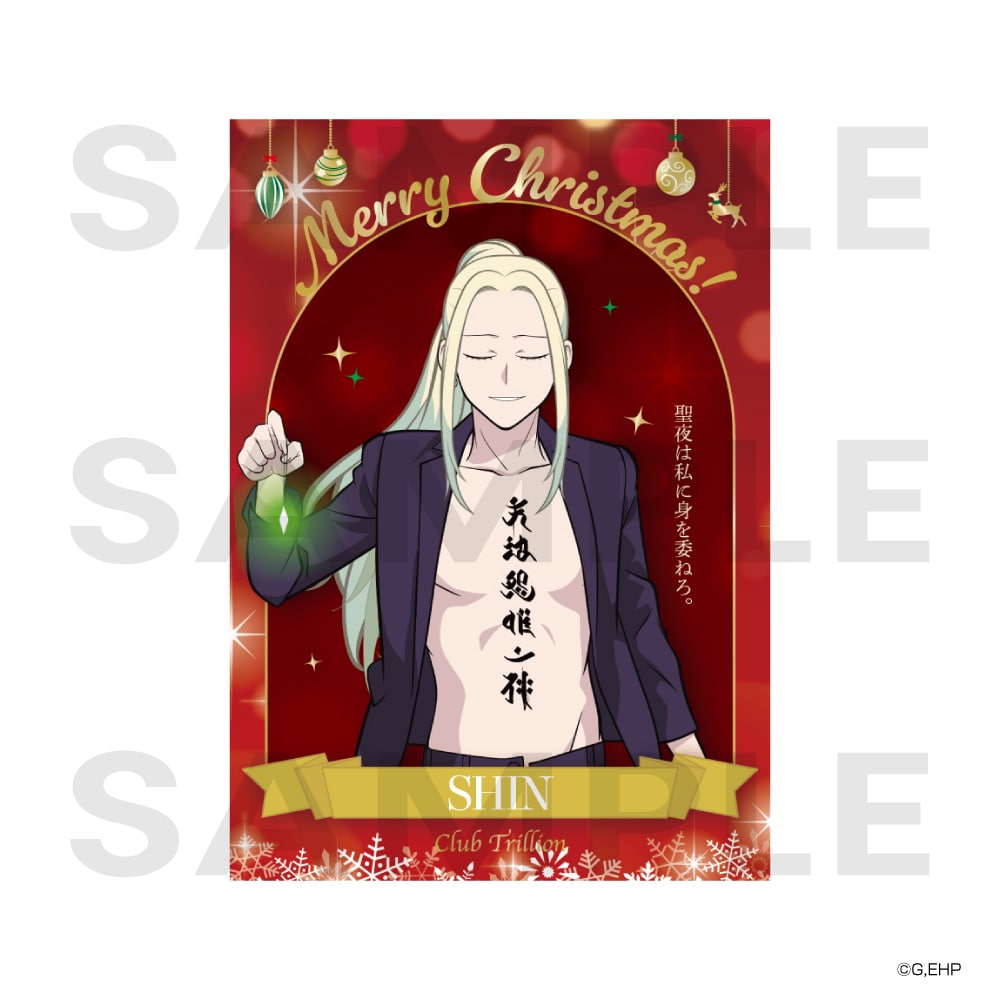 A:バースデー記念ブロマイド(シン)特典対象期間:2025年11月21日(金)19:00〜2026年1月16日(金)23:59 ※オリシャン風ボトル1点お買い上げにつき、ご購入いただいたキャラクターの特典1点となります。 ※デザイン及び画像はイメージです。 ※期間内にて「えぶりていホストCLUB★CAFEオリシャン風ボトル シンver」をご購入されたお客様のみクリスマスカードかバースデーカードをお選び頂けます。 ※期間内でも在庫無くなり次第販売終了となります。あらかじめご了承ください。