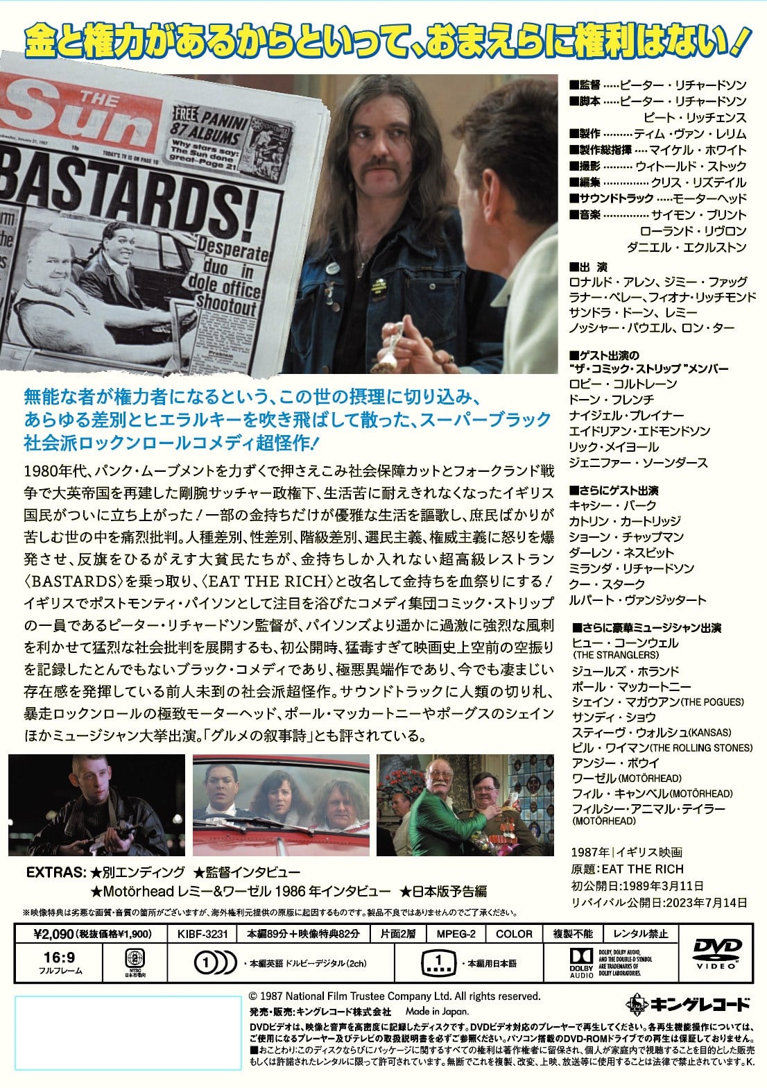 金と権力があるからといって、おまえらに権利はない!無能な者が権力者になる、この世の摂理に切り込み、あらゆるヒエラルキーを吹き飛ばして散った、スーパーブラック社会派R&Rコメディ超怪作! 1987年/イギリス