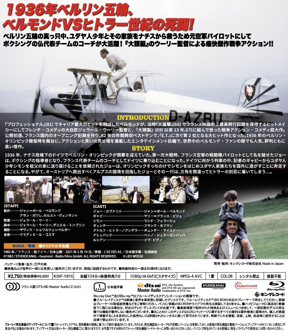 1936年ベルリン五輪。ベルモンドVSヒトラー世紀の死闘! ベルリン五輪の真っ只中、ユダヤ人少年とその家族をナチスから救うため、ベルモンド扮するボクシングの仏代表チームのコーチが大奮闘! 1982年/フランス/西ドイツ